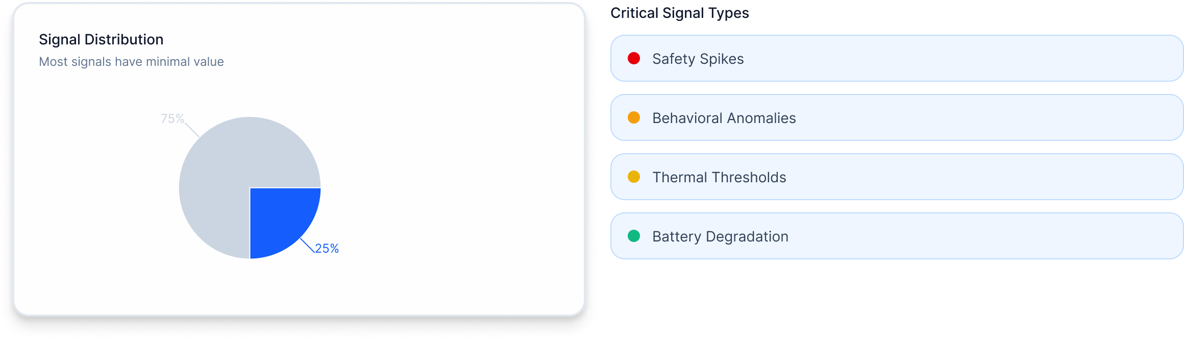 Events like safety spikes, behavioral anomalies, thermal thresholds, or battery degradation mattered far more than routine readings.